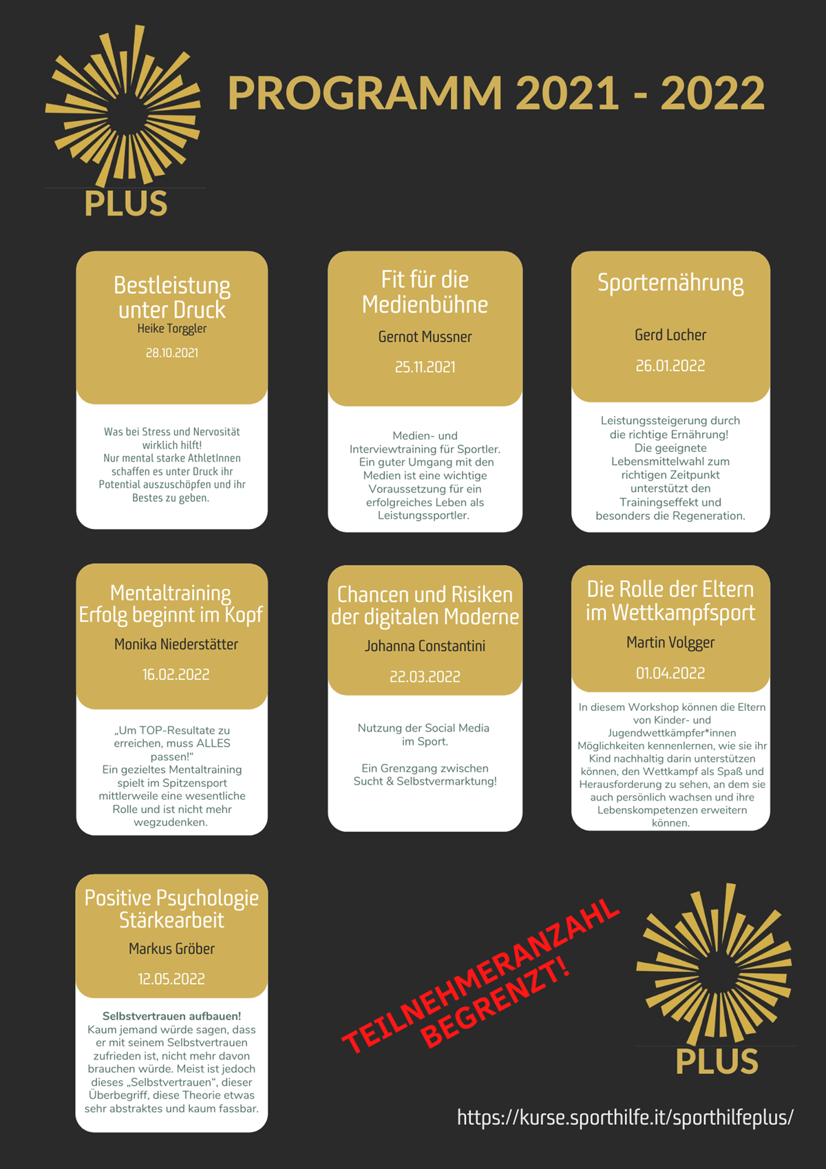 Anmelden kann man sich direkt über unsere Webseite und die Teilnahme ist für unsere geförderten SportlerInnen kostenlos!